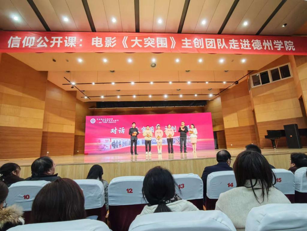 为激发现代青年大学生的爱国情怀,铭记历史,珍惜当下的和平生活,传承弘扬红色沂蒙精神。12月9日德州学院于南校音乐厅组织开展了信仰公开课:“电影《大突围》走进德院”活动。电影《大突围》出品人、总制片人陶姝君,导演杨真、演员廉知颖、副导演阿坤出席,化学化工学院“薪火沂蒙志愿宣讲团”积极参入到活动当中,深入学习红色沂蒙精神的内涵。