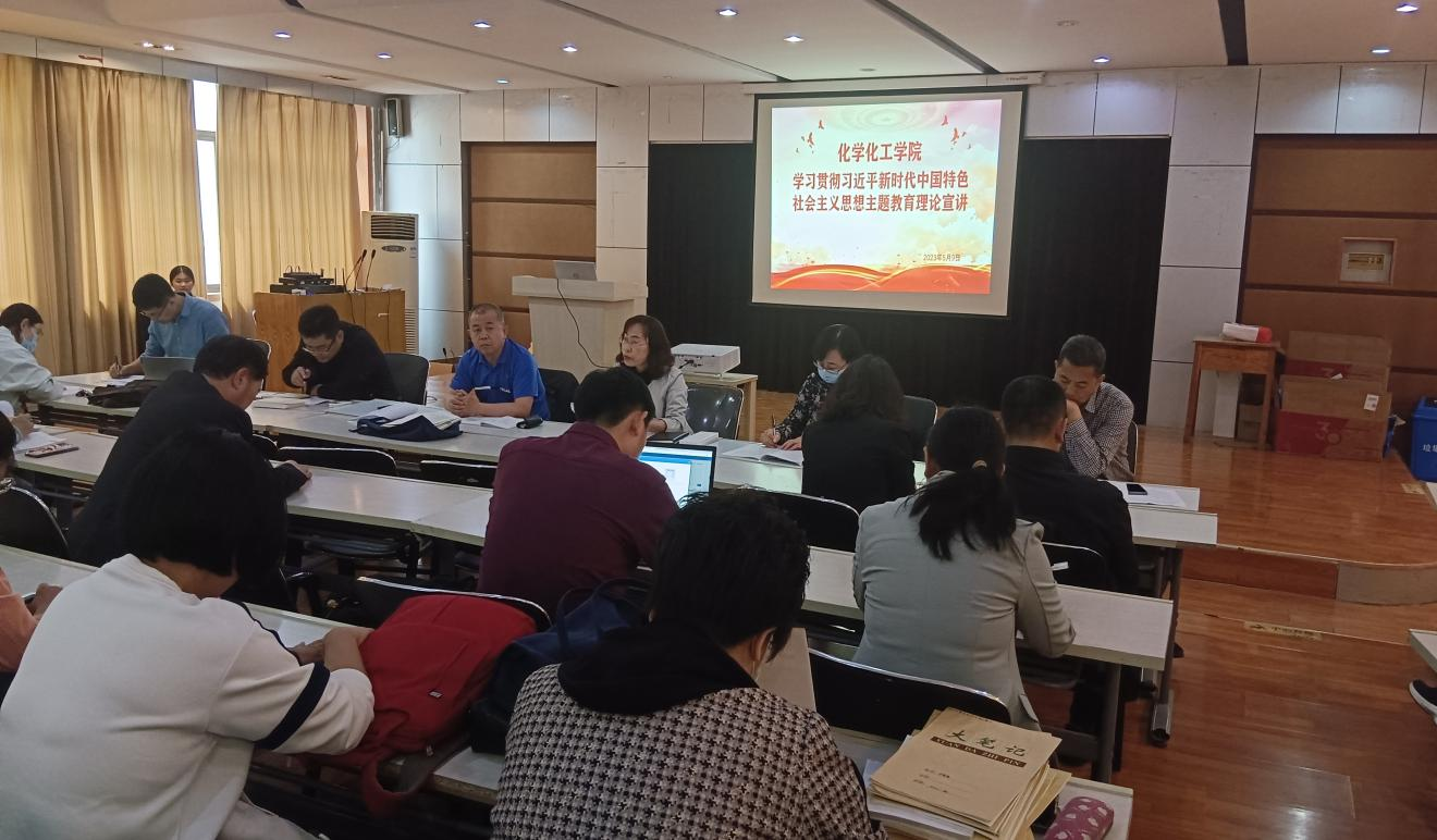 为深入开展学习贯彻习近平新时代中国特色社会主义思想主题教育,充分认识开展主题教育的重大意义,将“学思想 强党性 重实践 建新功”的总要求走深走实,5月9日下午,化学化工学院于求实楼215会议室召开学习贯彻习近平新时代中国特色社会主义思想主题教育理论宣讲会。会议由学院党委书记习的重大意义、主题教育的目标要求任务、扎实开展主题教育工作进行宣讲。会议指出,要坚持学思用贯通、知行信统一,把习近平新时代中国特色社会主义思想转化为坚定的理想,把握“学思想、强党性、重实践、建新功”的总要求,以具体的目标为引领,以解决问题为抓手,高标准、高质量完成主题教育的各项任务。会议要求,要把主题教育贯穿到理论学习、教育教学、人才培养、科学研究、服务社会等各项工作中去,确保主题教育融入日常、抓在经常,扎实推进、取得实效。
