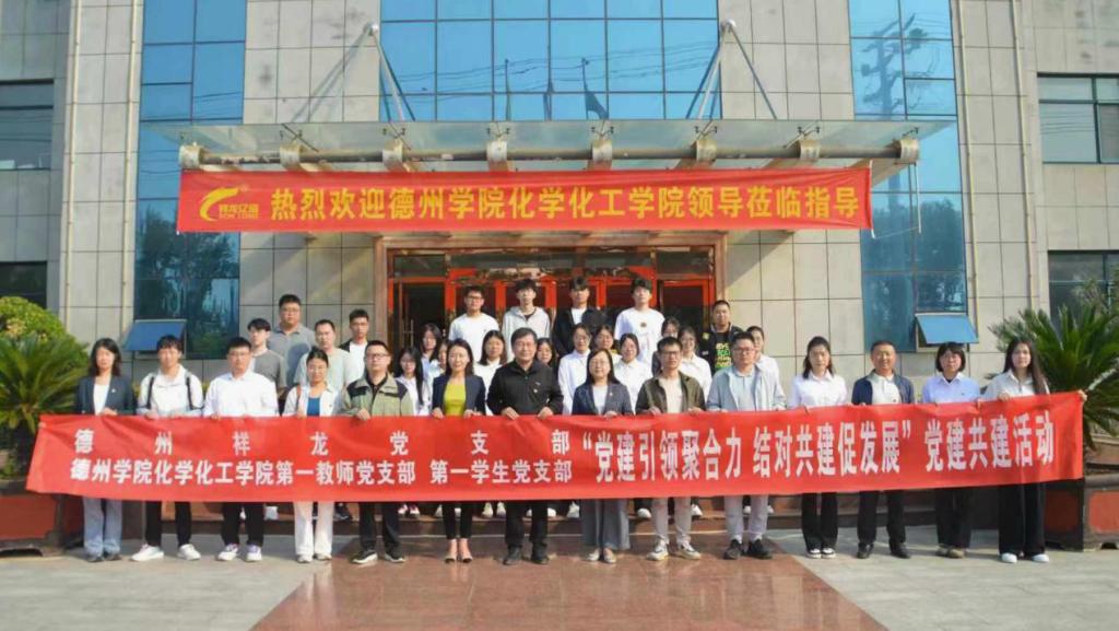在新中国成立75周年之际,为深入学习贯彻党的二十届三中全会精神,促进人才培养与地方产业融合发展,探索党建引领下的产教融合育人新路径,推动校企双方在党建及合作领域深度互融、资源共享。9月25日上午,化学化工学院赴德州祥龙生化有限公司开展校企党建联建活动。学院党政负责人、师生党员、学生代表30余人参加。
