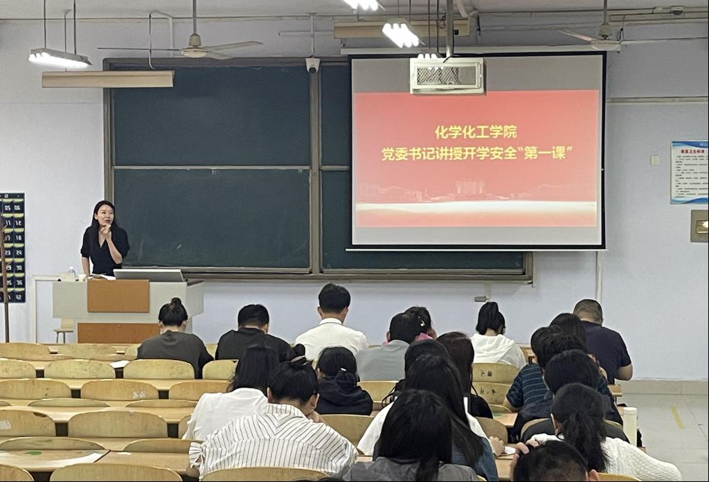 为筑牢校园安全防线,强化教师队伍建设,9月30日,化学化工学院于求实楼101教室举行秋季学期开学“安全第一课”。学院党委书记主讲,全体教师及辅导员参加。