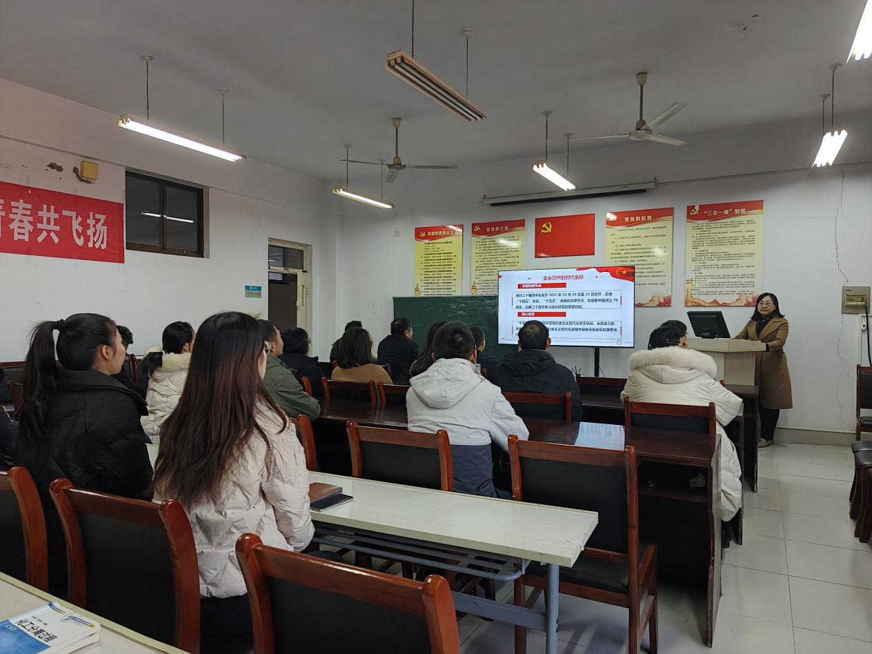 党课伊始,院长首先阐述了党的二十届四中全会召开的时代背景与重大意义。她指出,全会于2025年10月召开,正值“十四五”收官、“十五五”谋篇的关键时期,也是新中国成立76周年、向第二个百年奋斗目标进军的重要历史节点。全会审议通过的《中共中央关于制定国民经济和社会发展第十五个五年规划的建议》,为未来五年乃至更长时期国家发展擘画了宏伟蓝图,也为高等教育和学院发展指明了方向。