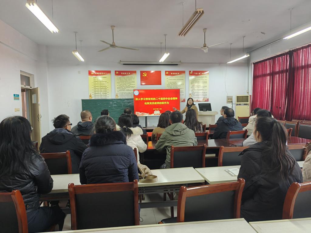 为深入学习贯彻党的二十届四中全会精神,推动学院党建工作与事业发展深度融合,11月25日,化学化工学院院长围绕“深入学习贯彻党的二十届四中全会精神——化院党员教师的新作为”主题,为全院党员教师讲授了一堂内容丰富、思想深刻的专题党课。
