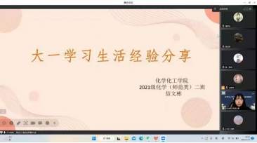 为帮助2022级学生做好寒假期间的学习实践活动,更好的规划大学生活,养成良好的学习习惯,明确大学四年的奋斗目标,化学化工学院于2023年1月13 日晚19:30举办2022级学业指导活动,活动邀请了2021级优秀学生代表进行学习经验交流分享。学院分管教学负责人、年级辅导员、院教学秘书出席了此次活动。