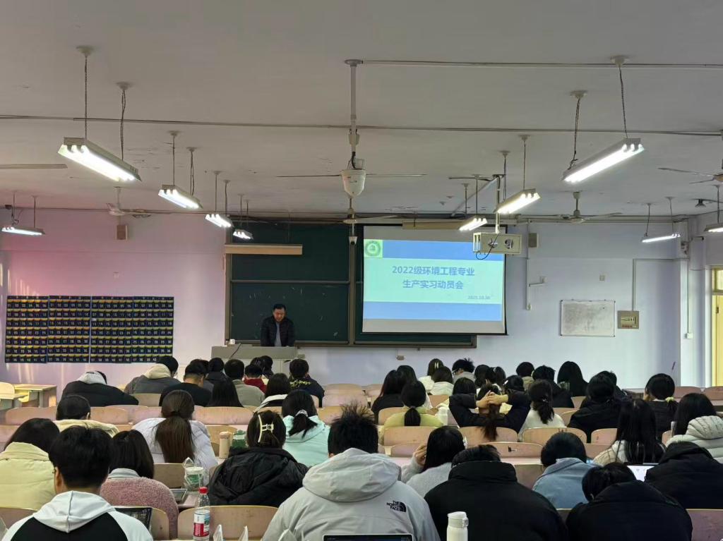 2025年11月3日至16日,2022级环境工程专业本科生及专业教师开展了为期2周的专业生产实习。实习前,环境工程系组织了实习动员会,明确实习期间学生需要完成的任务,强调实习期间安全注意事项、实习纪律等。实习期间,在六位指导老师的带领下,进入宇虹颜料股份有限公司进行实习。
