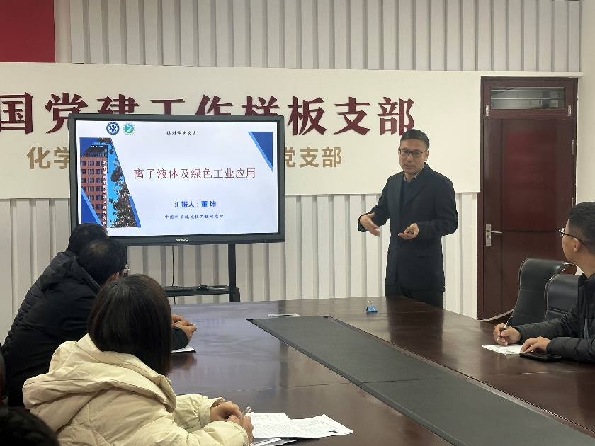 12月25日,中科院过程所教授、博士生导师董坤教授应邀到学院交流,并以“离子液体及绿色工业应用”为题为学院师生做了精彩学术报告。学院主要负责人、相关教师及研究生参加交流会。
