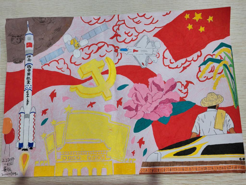 本次活动共征集50余幅作品,涵盖征文、绘画以及书法等形式。学生们在本次活动中,充分展现爱国情怀,表达爱国之情,增强了坚定不移跟党走的信念,从党的重大成就和历史经验中增强信心,增长智慧。最终评选出一等奖两名、二等奖两名、三等奖三名,并将优秀作品向广大师生展示,获得一众好评。