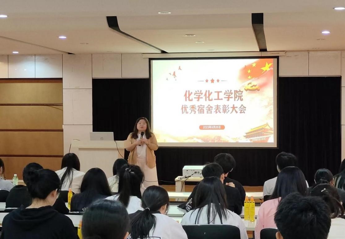 为鼓励学生营造宿舍卫生安全环境,9月26日——9月27日,化学化工学院于求实楼0215教室先后举办8月份、9月份月度优秀宿舍表彰大会。学院分管公寓辅导员、各年级辅导员老师、宿管部学生干部、班长、团支书、舍长等100余人参与此次大会。