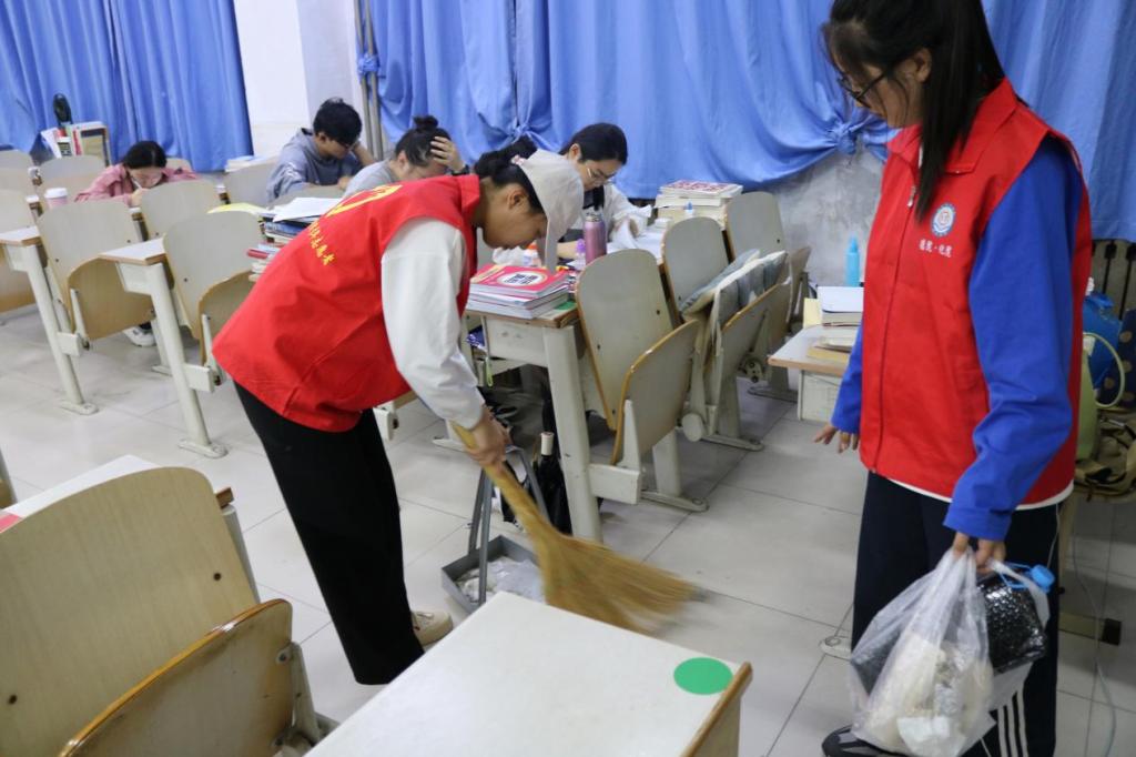 为构建和谐友好、洁净美丽的校园,创建良好的学习环境,进一步提高我院学子的劳动服务意识,10月18日,化学化工学院组织青年志愿者开展打扫考研教室和清理教室白板志愿活动。