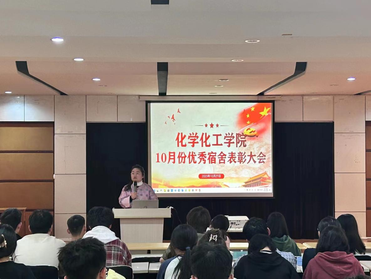 为鼓励学生营造宿舍卫生安全和谐的环境,10月27日下午,化学化工学院于求实楼0215教室开展十月份优秀宿舍表彰大会。学院分管公寓辅导员、年级辅导员、班长、团支书、公寓网格员、宿舍心理守护员代表出席本次大会。