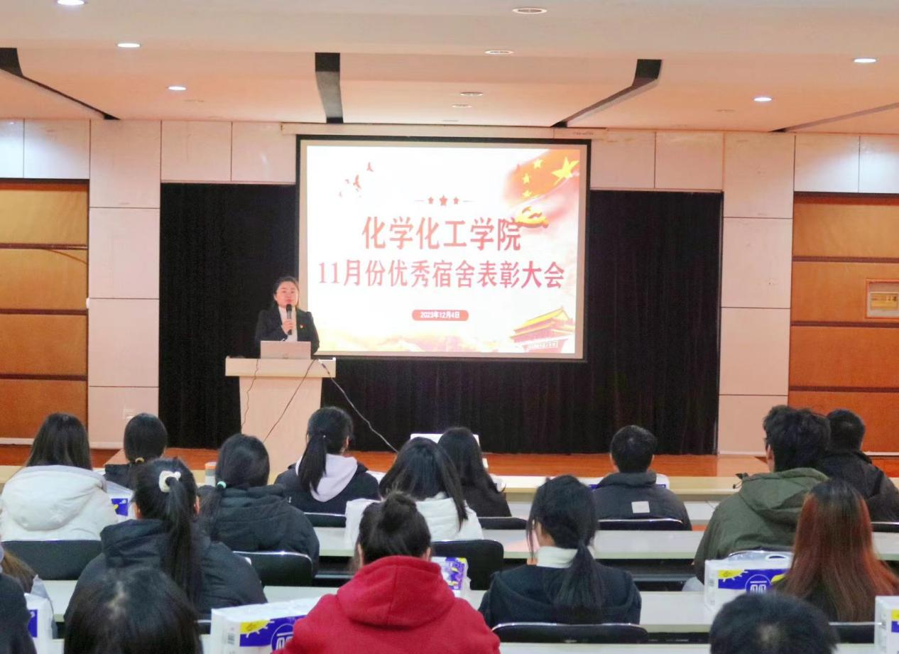 为进一步推动宿舍安全与文化建设,培养学生安全文明意识与积极向上的心理品质,12月5日,化学化工学院于求实楼0215室开展11月优秀宿舍表彰大会暨心理委员、心理守护员培训会。学院学工办主任、辅导员、心理委员、心理守护员、学生代表等100余人出席本次大会。