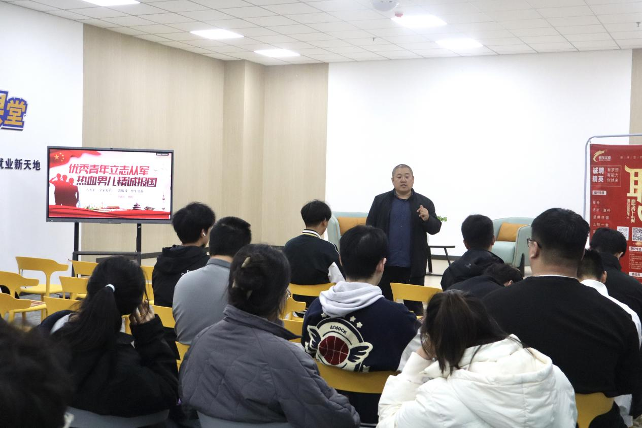 为深入贯彻习近平强军思想,进一步落实国家相关征兵工作要求,帮助大学生全面了解征兵政策,激发应征入伍热情,近日,化学化工学院于大学生就业创业赋能中心开展征兵政策解读会,2025届预毕业生参加。