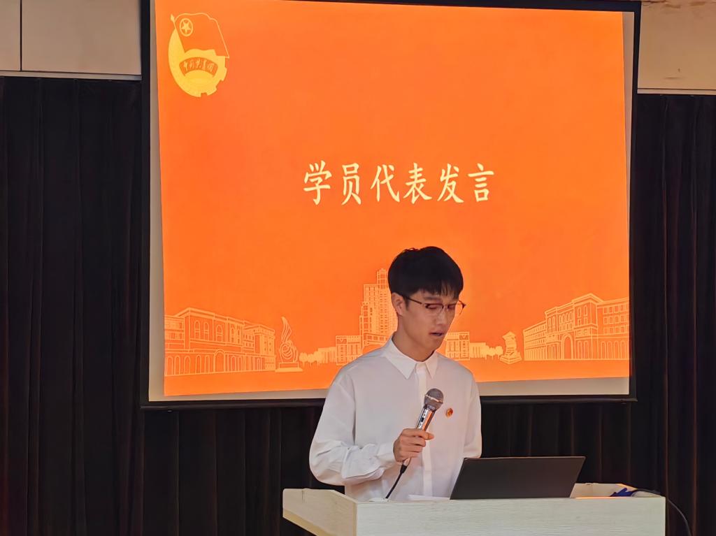 开班仪式在嘹亮的团歌中拉开帷幕。学院团委书记传达了《德州学院 2024-2025学年“青年马克思主义者”培训班课程安排》,对此次培训班的课程内容作了详细说明。党委副书记为参训学员代表授旗,参训学员代表作表态发言,表达了认真参加培训,争取优异成绩的决心。