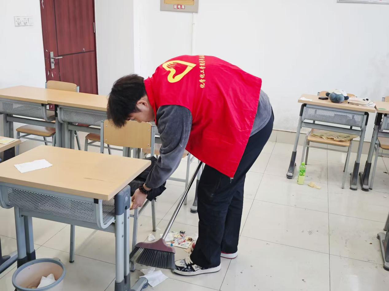 活动期间,志愿者们分工协作、密切配合,按照预先划分的清洁区域,有序开展地面清扫、桌椅整理、窗台除尘等工作,经过细致劳动考研自习区域焕然一新。志愿者们累计清理7间自习室,在活动中用实际行动诠释了"奉献、友爱、互助、进步"的志愿精神,点滴劳动也是对雷锋同志‘螺丝钉精神’的践行。
