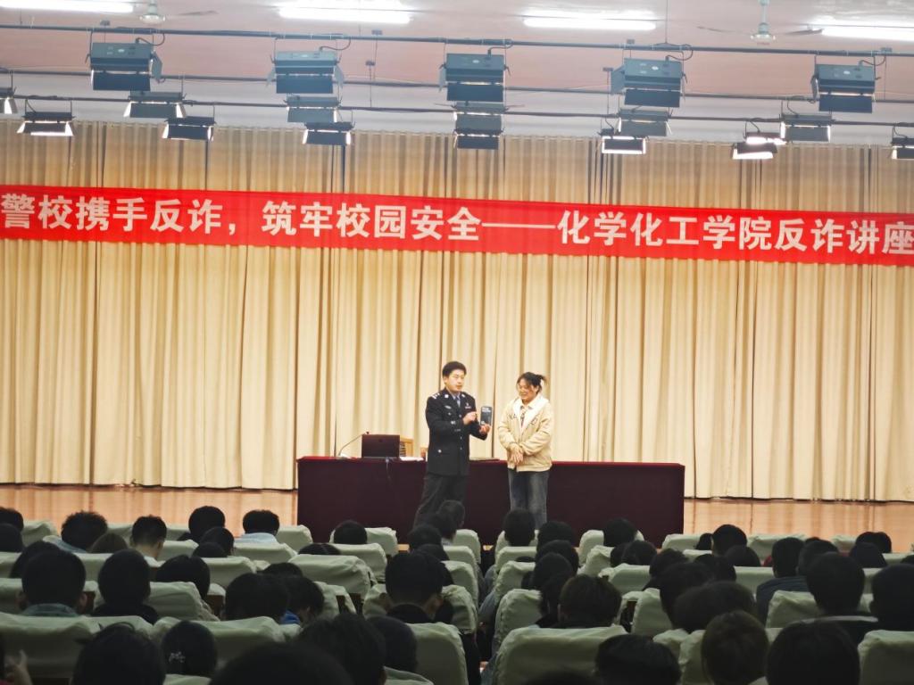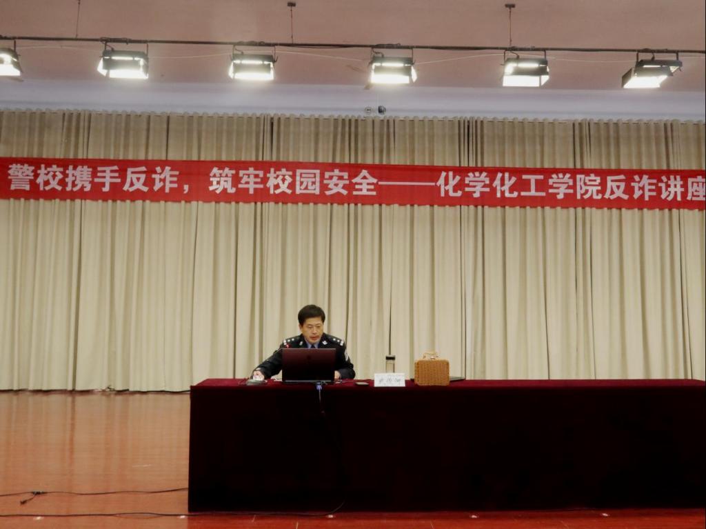 为切实筑牢校园反诈安全防线,提高学生的防诈骗意识,10月26日,学校保卫处、警务室、化学化工学院联合开展“警校携手反诈,筑牢校园安全”反诈宣传讲座。学校警务室主任武俊河担任主讲,学校保卫处有关负责人、化学化工学院党委副书记、辅导员、全体学生参加。