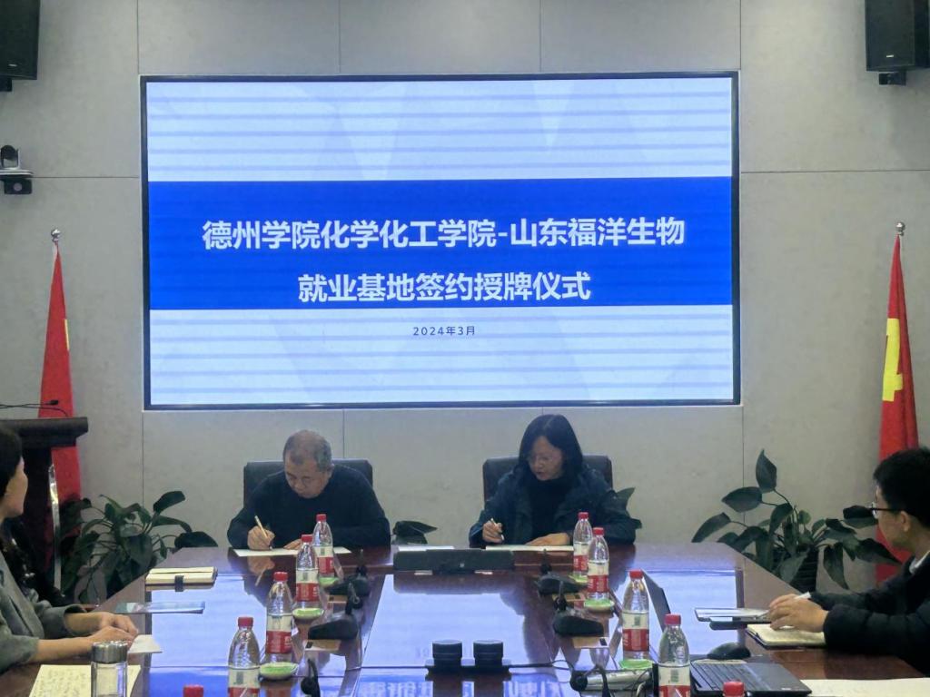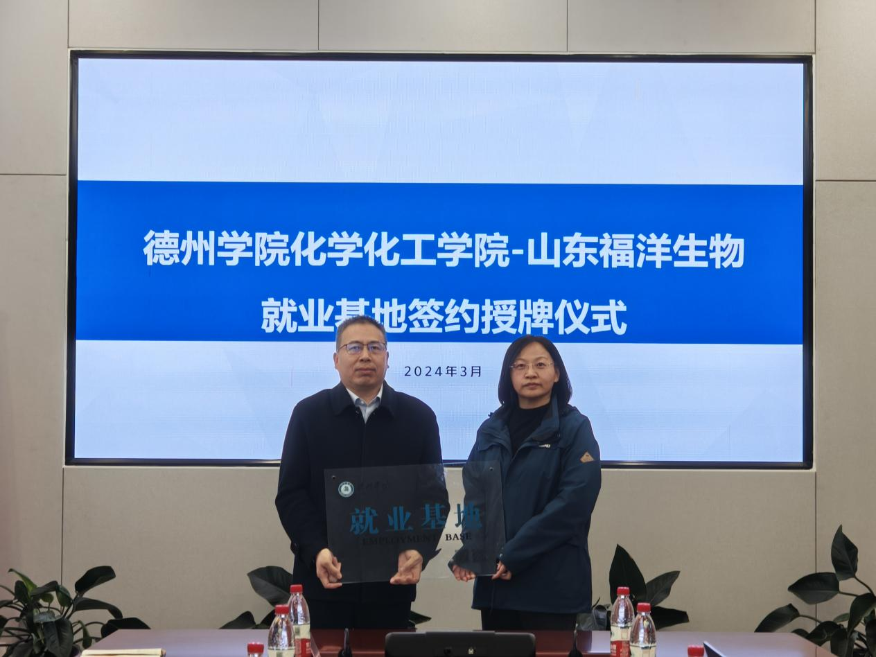 化学化工学院负责人介绍了学院的师资力量、人才培养、学科建设等情况,希望在人才供需、实践教学、科技攻关等方面深度合作,共同打造创新人才培养新模式。随后,校企双方进行了深入交流探讨,在精准供需对接、人才培养方面达成了初步共识。会后,校企双方共同签订了《德州学院就业基地共建协议书》,举行了就业基地授牌仪式。