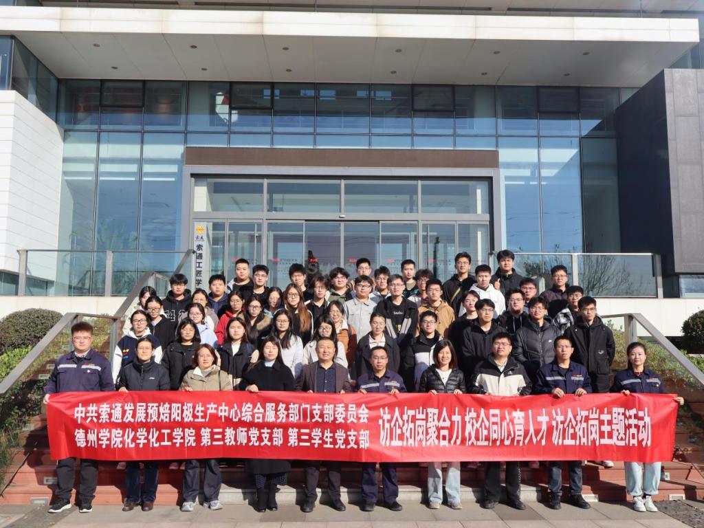为深化校企协同育人机制,拓宽学生实习与就业渠道,11月12日,化学化工学院党委副书记带队,组织学院教师代表、毕业班辅导员及学生党员一行,赴索通发展股份有限公司山东生产中心开展“访企拓岗聚合力 校企同心育人才”访企拓岗专项活动。此次活动旨在通过实地走访,精准对接企业人才需求,全力促进学院毕业生更充分、更高质量就业。