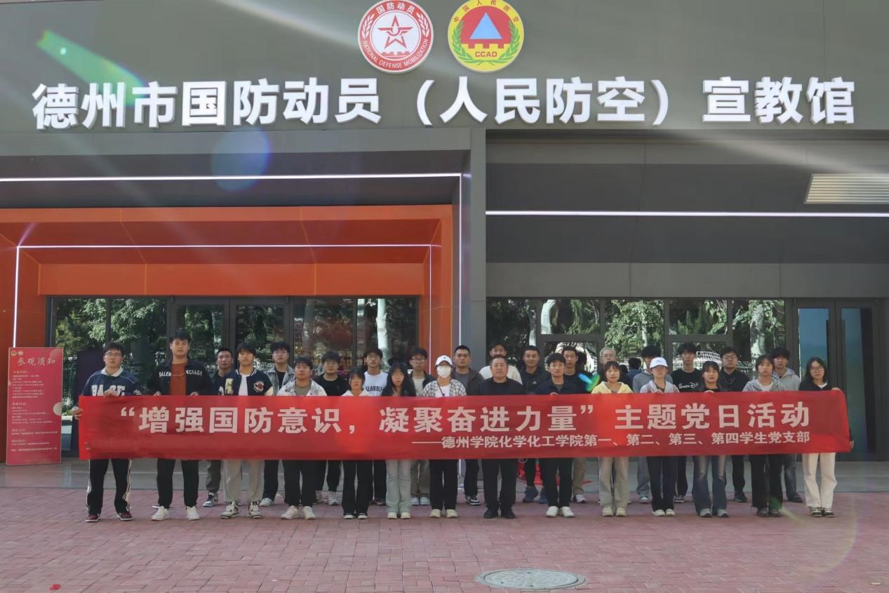 为增强学生党员国防意识,提升国家安全意识,10月10日下午,化学化工学院组织学生党员代表赴德州市国防动员(人民防空)宣教馆开展“增强国防意识,凝聚奋进力量”主题党日活动。