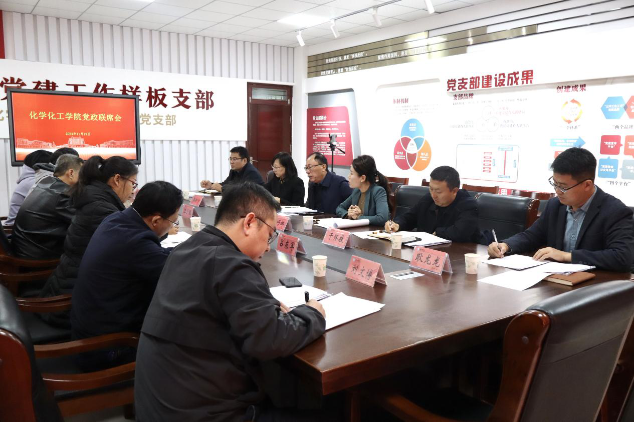 11月19日,校党委副书记张存峰列席旁听化学化工学院党委会议、党政联席会议。学院全体班子成员、教师党支部书记、党政办公室相关人员、组织员及教师代表参加。会议由化学化工学院负责人主持。
