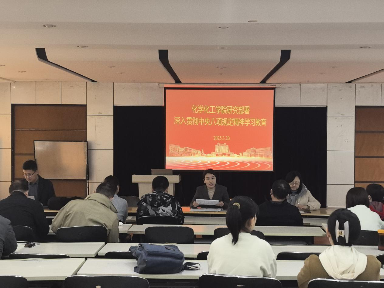 3月20日上午,化学化工学院在求实楼215召开深入贯彻中央八项规定精神学习教育部署动员会,落实学校关于在全校开展深入贯彻中央八项规定精神学习教育的通知要求,研究部署学习教育工作。学院全体党政班子成员、部分教职工参加会议。会议由学院党委书记主持。