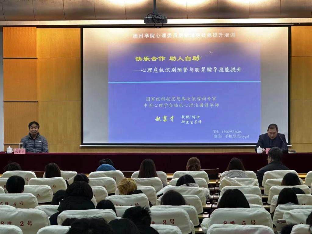 为健全我院心理健康四级网络,加强心理健康教育工作队伍建设,充分发挥心理委员在大学生心理健康教育工作中的作用,化学化工学院于12月1日上午在厚德楼四楼报告厅组织心理委员参加学校朋辈心理辅导技能提升培训,认真聆听学习聊城大学赵富才教授的专题报告。