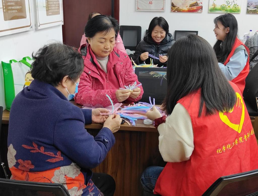 在第114个“三八”国际劳动妇女节来临之际,为丰富社区居民业余生活,弘扬中华传统编织文化,传承雷锋精神,3月8日下午,化学化工学院在兴文社区开展了“巾帼花争艳,巧手绽芳华”扭扭棒花创意DIY手工制作活动