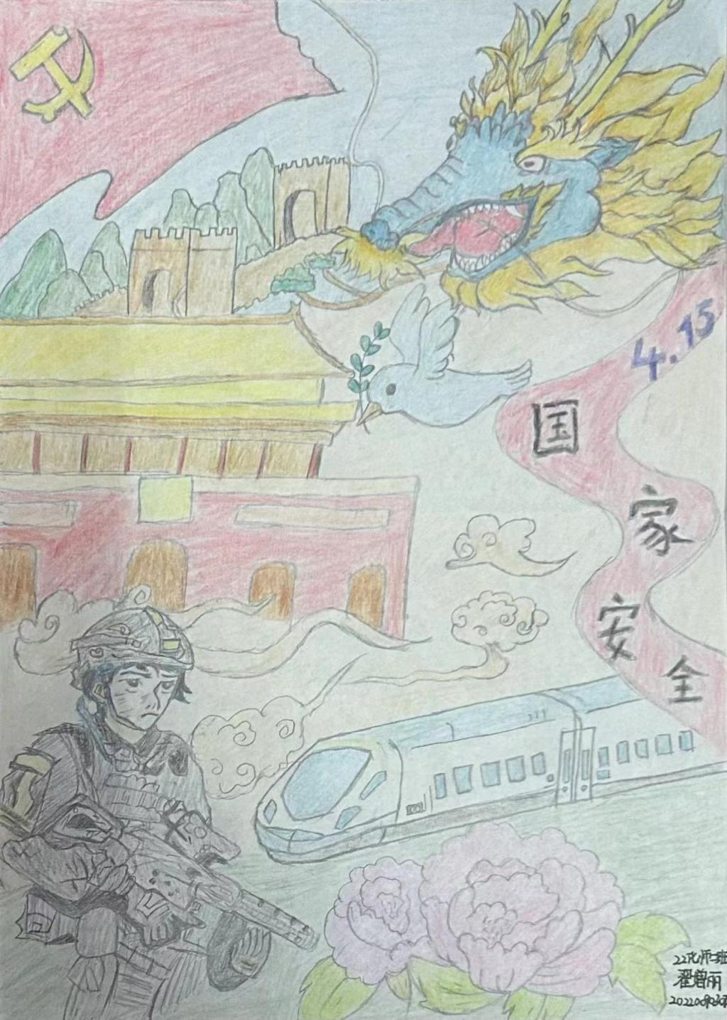 活动中,同学们认真收集海报创作的背景知识,构建设计思路,确定选取内容并学习制作海报。一幅幅作品,以精湛的画技、精美的配图展示了国家安全教育日相关知识,突出了习近平总书记关于总体国家安全观的重要论述,帮助周围同学更好的了解什么是国家安全以及国家安全教育日的重要性,展现出我院青年学子独具特色的风采。