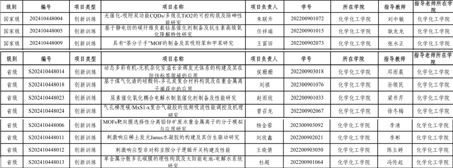 近日,山东省教育厅公布了2024年省级大学生创新创业训练计划项目名单,我校共有50项大学生创新创业计划项目获批立项,其中国家级项目13项,省级项目37项。化学化工学院申报的24个项目顺利获批,其中国家级3项,省级8项,立项总数和国家级项目立项数创近五年来最高,取得历史最好成绩,实现了我院在大学生创新创业训练计划项目上的重大突破!
