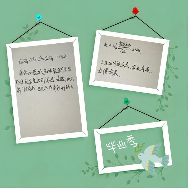 学院通过形式多样的教育活动,引导毕业生回顾成长历程,强化爱校荣校意识,培育社会责任担当。开展“心系母校 情寄未来”系列活动,毕业生通过撰写感恩信笺、制作成长纪念册、拍摄祝福视频等形式记录校园回忆。学院创新设计“化学反应方程式” 留言区毕业墙,以化学语言传递祝福;定制化学方程式祝福书签,将暖心寄语融入专业特色,激励毕业生带着母校的殷切嘱托,以自信昂扬的姿态奔赴人生新征程。