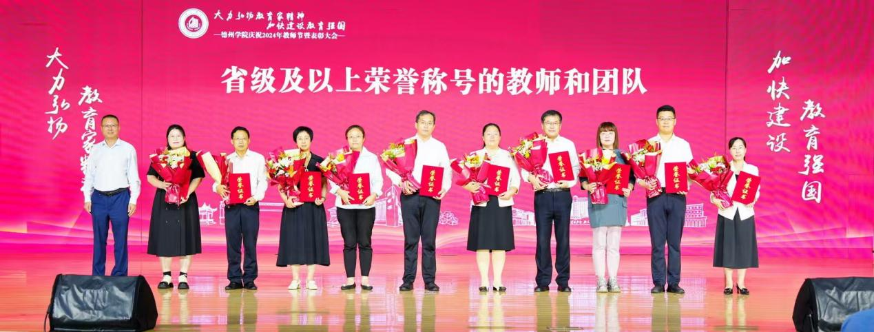 党委委员、副校长李甲亮宣读了《关于表彰2024年度优秀教师的决定》。大会表彰了获得省级及以上荣誉称号的教师和团队,德州学院2024年优秀教师、优秀教育工作者、师德师风先进个人。大会为2024年荣退教师和从事教育工作满30年教职工颁发了纪念品和纪念章。