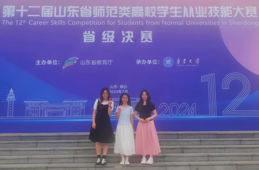 7月17日至21日,第十二届山东省师范类高校学生从业技能大赛决赛在鲁东大学举行,化学师范专业2名推荐选手和1名抽取选手分别参加了初中化学组和高中化学组比赛,最终李文洁、高一梦两位同学获得2项三等奖。