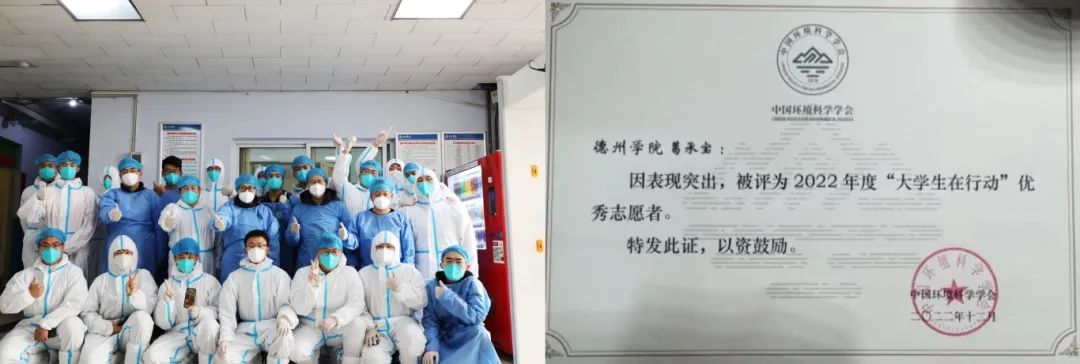 他积极参与志愿者工作,在创城志愿服务和进社区服务等方面志愿服务时长达800学时,他积极参加了暑期三下乡社会实践活动,投身济南市平阴县锦水街道养老院,同老人进行故事讲解、防疫知识传授等,亲身体验社会生活,拓宽个人视野,为将来踏入社会积累经验。曾参与“筑梦青春年华,助力乡村振兴”社会实践队赴德州市小高店村开展乡村振兴社会实践活动。曾获2022年度大学生在行动优秀志愿者、第十四届山东省化学实验大赛“优秀志愿者”。
