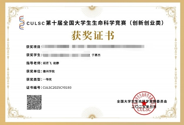 “敢闯敢拼,不负韶华”。凭借扎实的专业基础与积极的进取心态,于惠杰征战各类科技竞赛赛场。从省级赛场的崭露头角,到国家级赛场的荣耀加身,她用第十届全国大学生生命科学竞赛省级一等奖、国家级一等奖的成绩,证明了拼搏的价值。参与山东省自然科学基金课题的经历,更让她在学术探索与科研实践中迈出坚实步伐,展现了青年学子的奋进姿态。