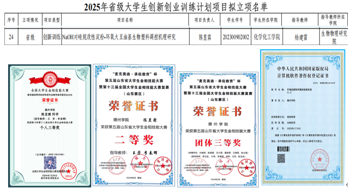作为大学生创新创业训练项目负责人,她牵头开展“NaOH对硅烷改性淀粉-环氧大豆油基生物塑料调控机理研究”,成功拿下省级立项。截至目前,已发表SCI论文1篇,斩获软件著作权1项、专利1项,用科研成果诠释青春担当。